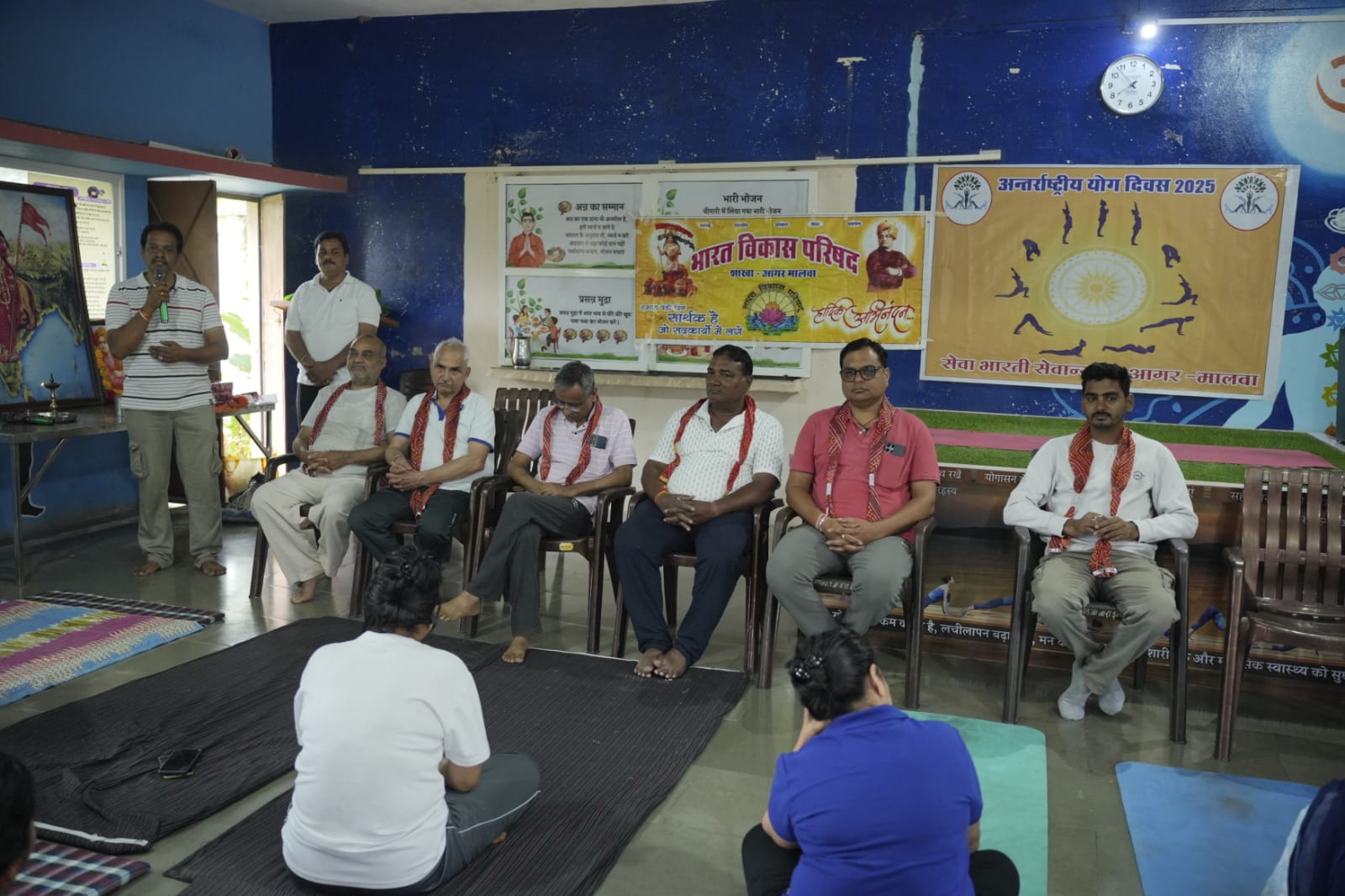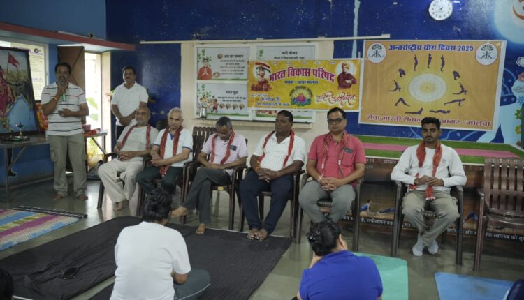 आगर मालवा। भारत विकास परिषद एवं सेवा भारती के संयुक्त तत्वावधान में योग दिवस मनाया गया जिसमें मुख्य अतिथि सेवा भारती के पालक एवं मार्गदर्शक गोपाल देराडी एवं मोहन आर्य,डॉक्टर गिरधर पटेल, प्रेम चौधरी,भारत परिषद के अध्यक्ष पारस जैन, कार्यक्रम के संयोजक कपिल खंडेलवाल, नवीन गुप्ता उपाध्यक्ष मंचासीन थे ।
