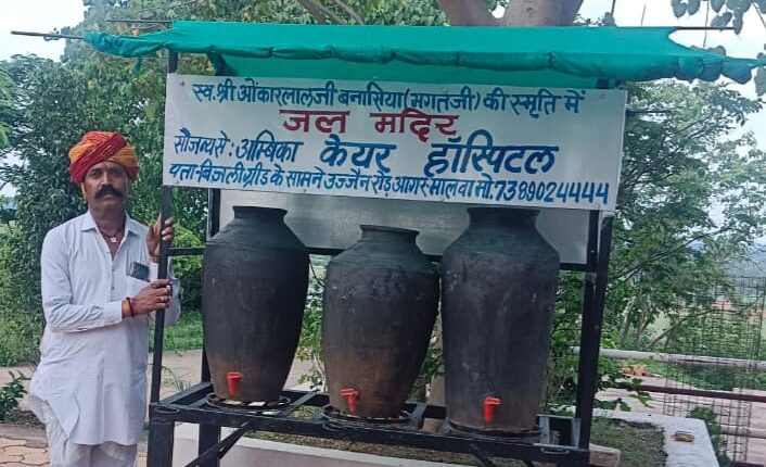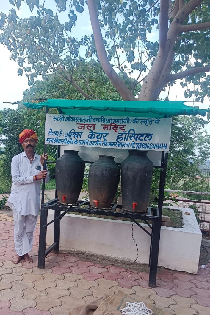 आगर-मालवा। अम्बिका केयर हॉस्पिटल के संचालक विशाल बनासिया द्वारा अपने दादा जी स्व. ओकारलाल बनासिया (भगतजी) की स्मृति में सामाजिक सेवा के भाव से कानड़ के देवनारायण मंदिर परिसर में जल मंदिर की स्थापना की गई है। अब इस मंदिर पर आने वाले श्रद्धालुओं और राहगीरों को ठंडे पेयजल की सुविधा उपलब्ध होगी।