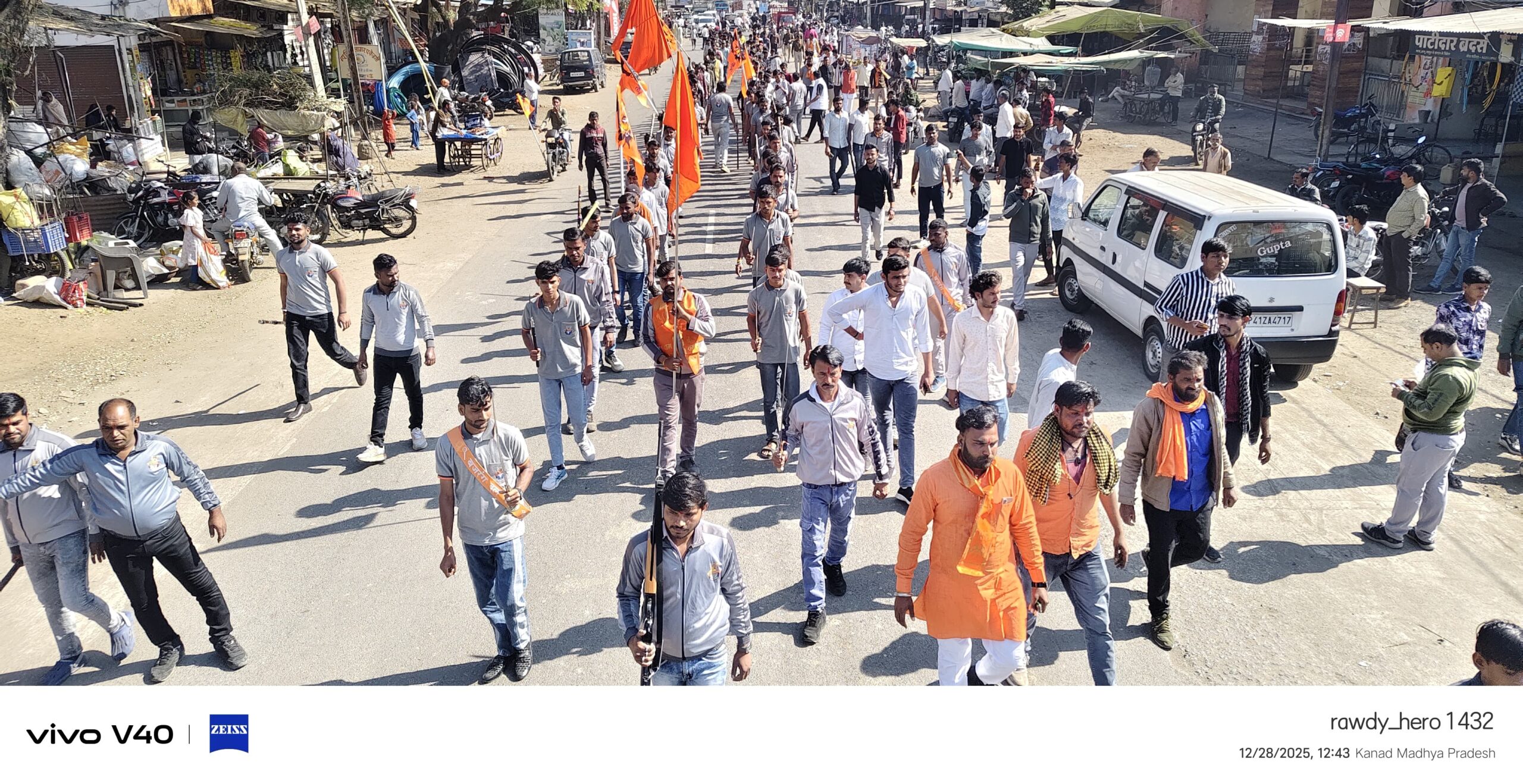 विश्व हिंदू परिषद प्रांत मंत्री मुख्य वक्ता विनोद शर्मा ने आगे कहा कि गीता जयंती के उपलक्ष में विश्व हिंदू परिषद बजरंग दल शौर्य यात्रा निकालता है क्योंकि विश्व हिंदू परिषद बजरंग दल ने ही बाबर के नाम का कलंक के नाम को मिटया। जिस प्रकार समाज में शांति स्थापित करने के लिए पुलिस फ्लैग मार्च निकालती हैं उसी प्रकार वर्ष में एक बार हिंदू समाज का संबल बढ़ाने के लिए एवं विधर्मियों को दिखाने के लिए शौर्य यात्रा निकालना आवश्यक है। उन्होंने आगे कहा कि
